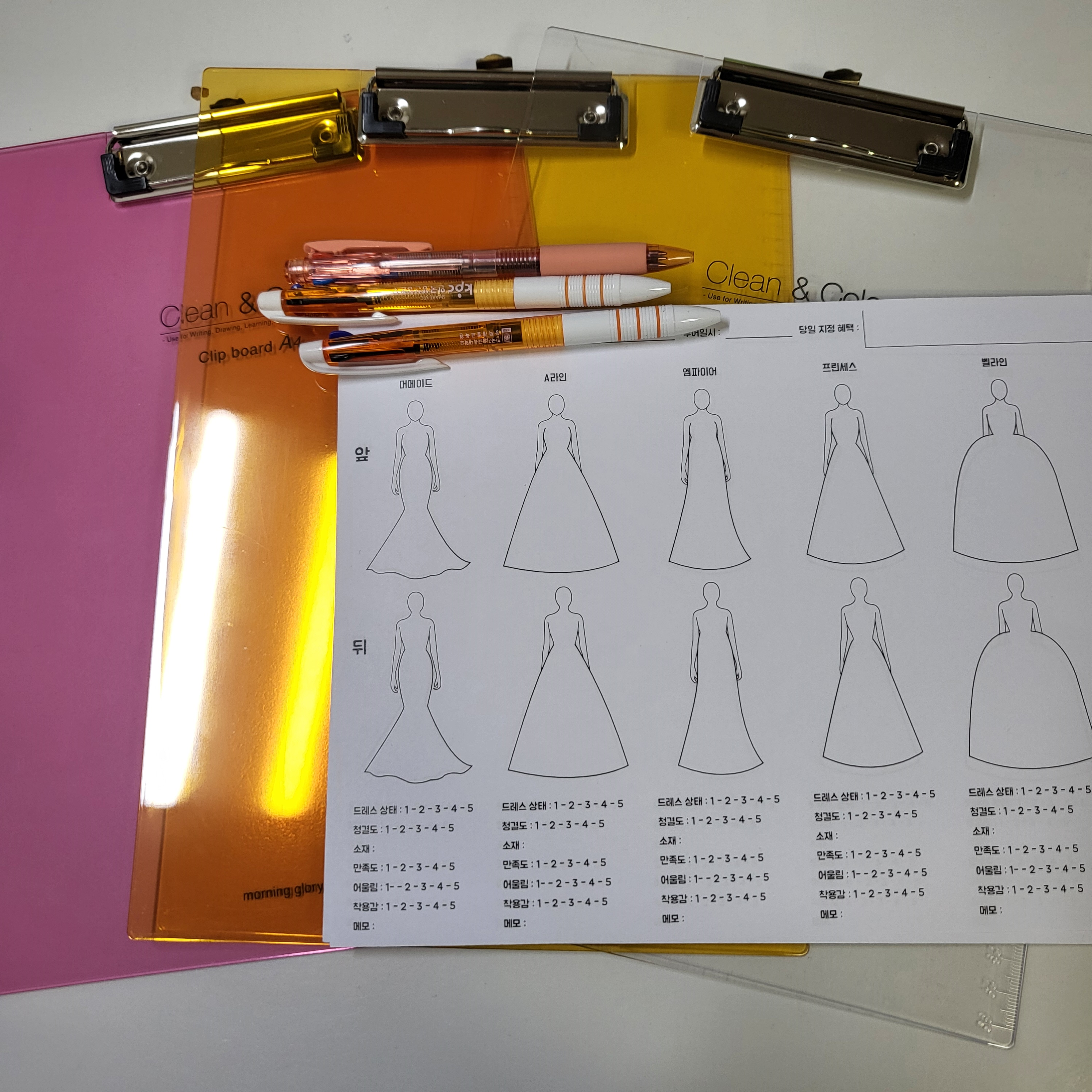 드레스 라인이 그려진 도안을 다운로드하여서 한 사람들 5장 정도 인쇄해서 가세요.