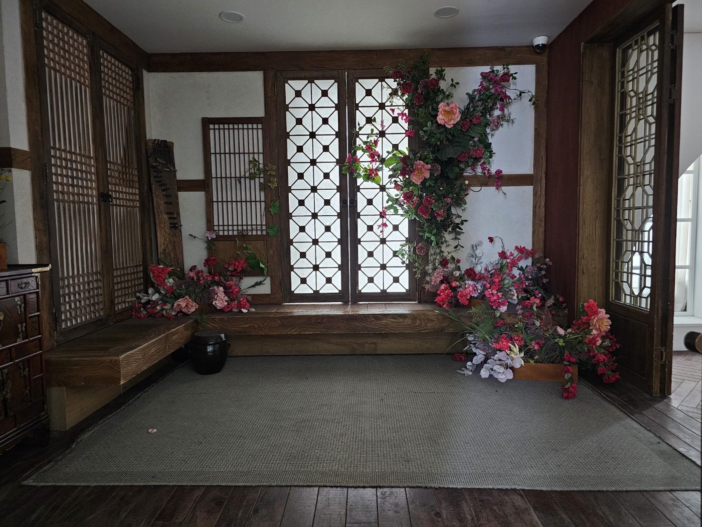 한복과 잘 어울릴 것 같은 한옥 컨셉과 핑크핑크하고 귀여운 방,