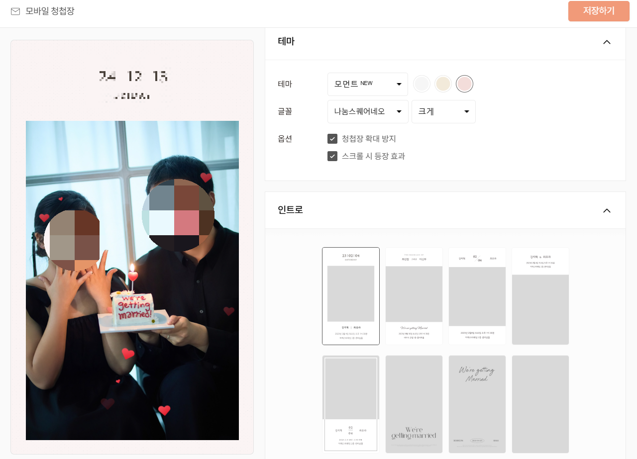 모바일 청첩장을 만들었으니