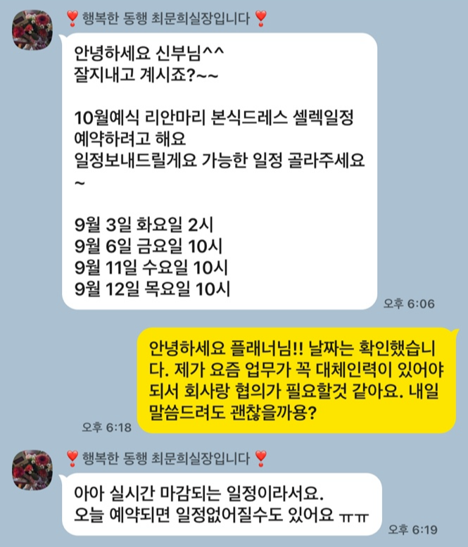 이래서 결혼 준비하다가 퇴사하나 싶을 정도로 수많은 평일 연차가 무의미하게 소진됐죠.