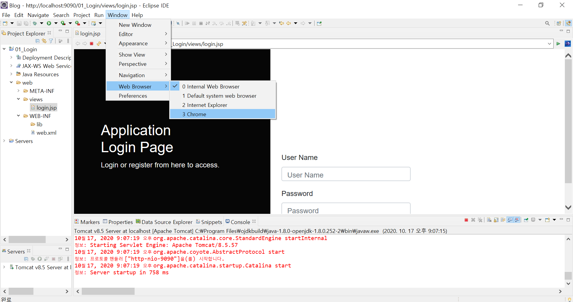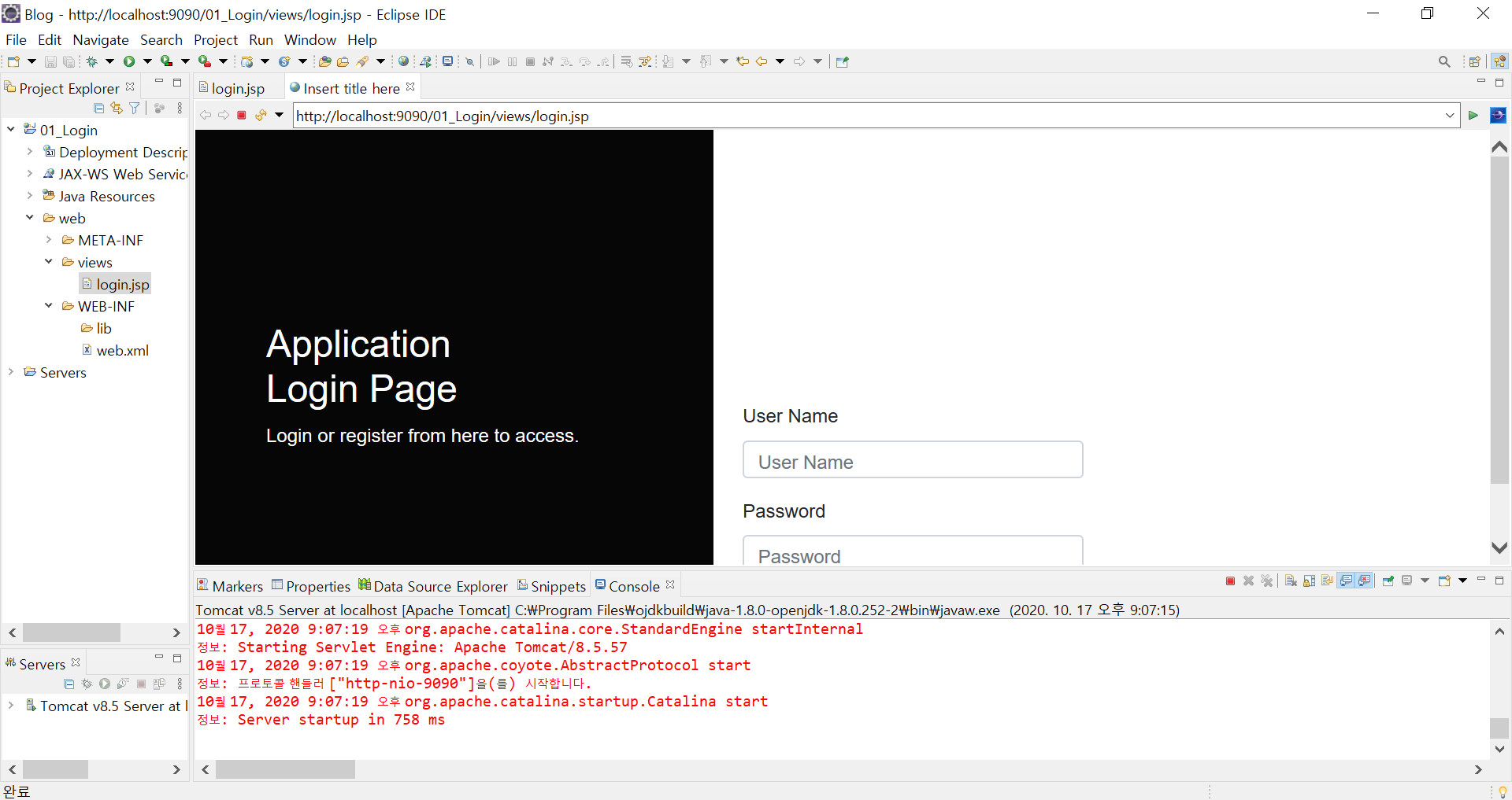 HTML 코드와 css코드를 입력했다면 login.jsp에서 Ctrl + F11을 눌러서 서버를 올려봅시다.