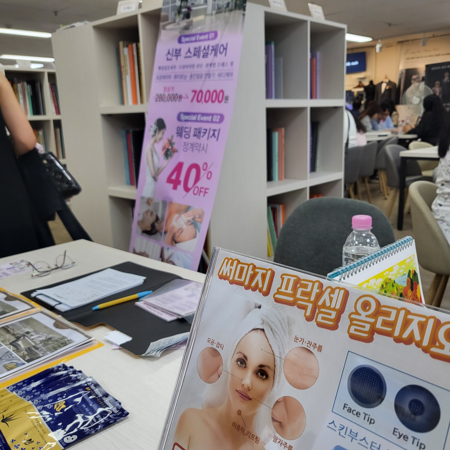 그때, 옆에 있던 피부관리 샵 상담사가 저희를 낚아채갔습니다.