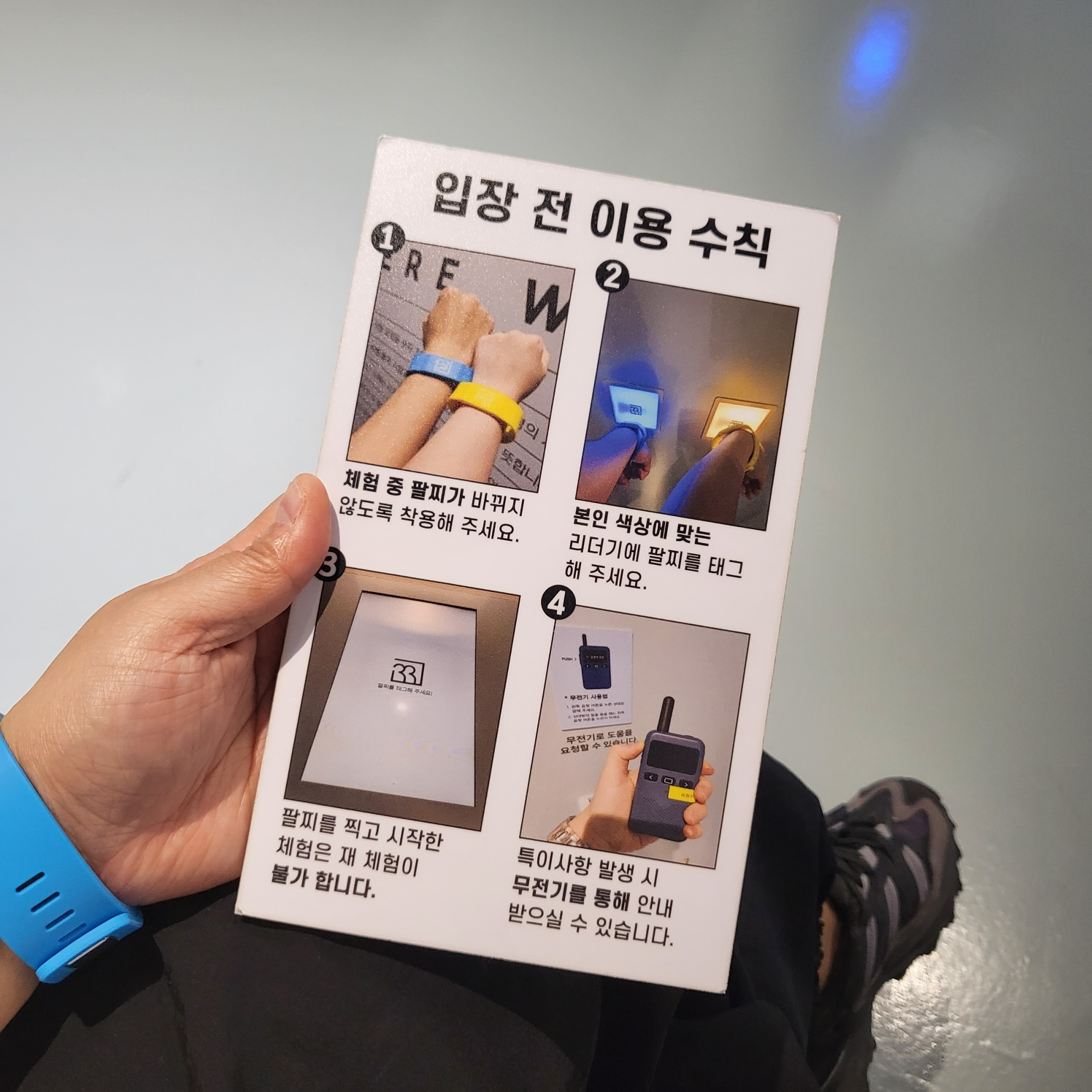 이름을 말씀드리면 팔찌와 입장 전 이용 수칙을 알려주세요.